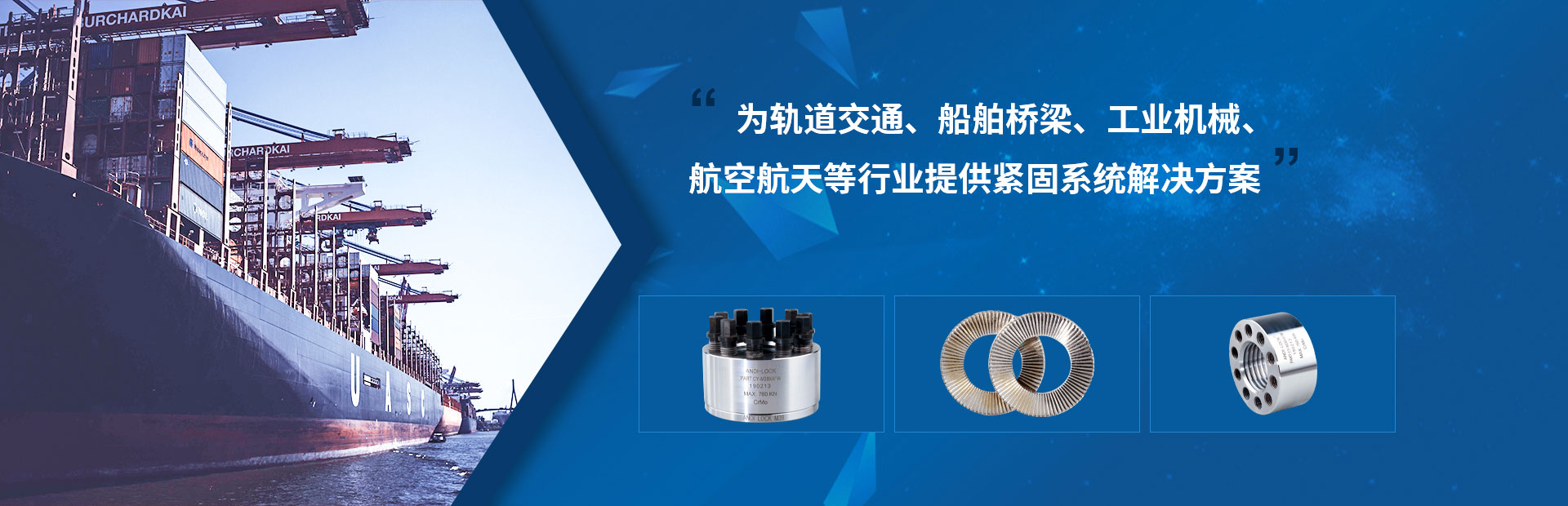 大連安迪機械設(shè)備有限公司位于美麗的濱海城市大連,是一個集科、工、貿(mào)為一體的全球性供應(yīng)商,自公司1996年成立以來,一致奉行"以質(zhì)量求生存、以科技求進步、以客戶求市場"的生產(chǎn)和經(jīng)營理念,公司自主研發(fā)、專業(yè)生產(chǎn)防松墊圈、止退墊圈、雙疊自鎖墊圈、din25201、高鐵聲屏障墊圈、超級螺栓,頂推螺母,多級頂推張緊器,螺母型張緊器等精密機械。并同時代理銷售國內(nèi)外各大知名品牌緊固件。